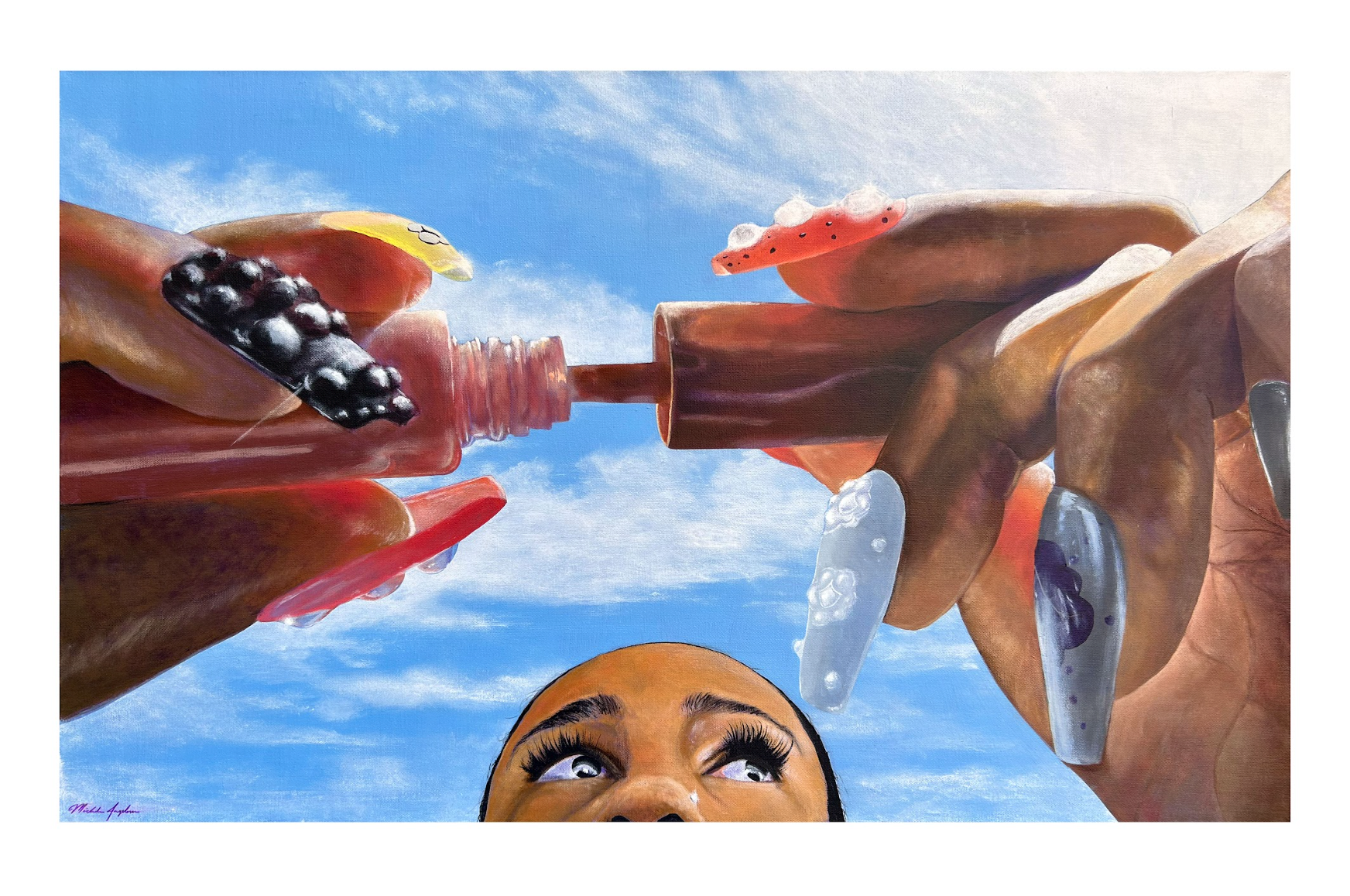 Daydreamer is the result of seeing beauty in a mundane moment. I was using my phone as a mirror to put on my lipgloss when I noticed how the sunlight glimmered on my nails. This action I do a million times a day became so dreamy and special I had to paint it.